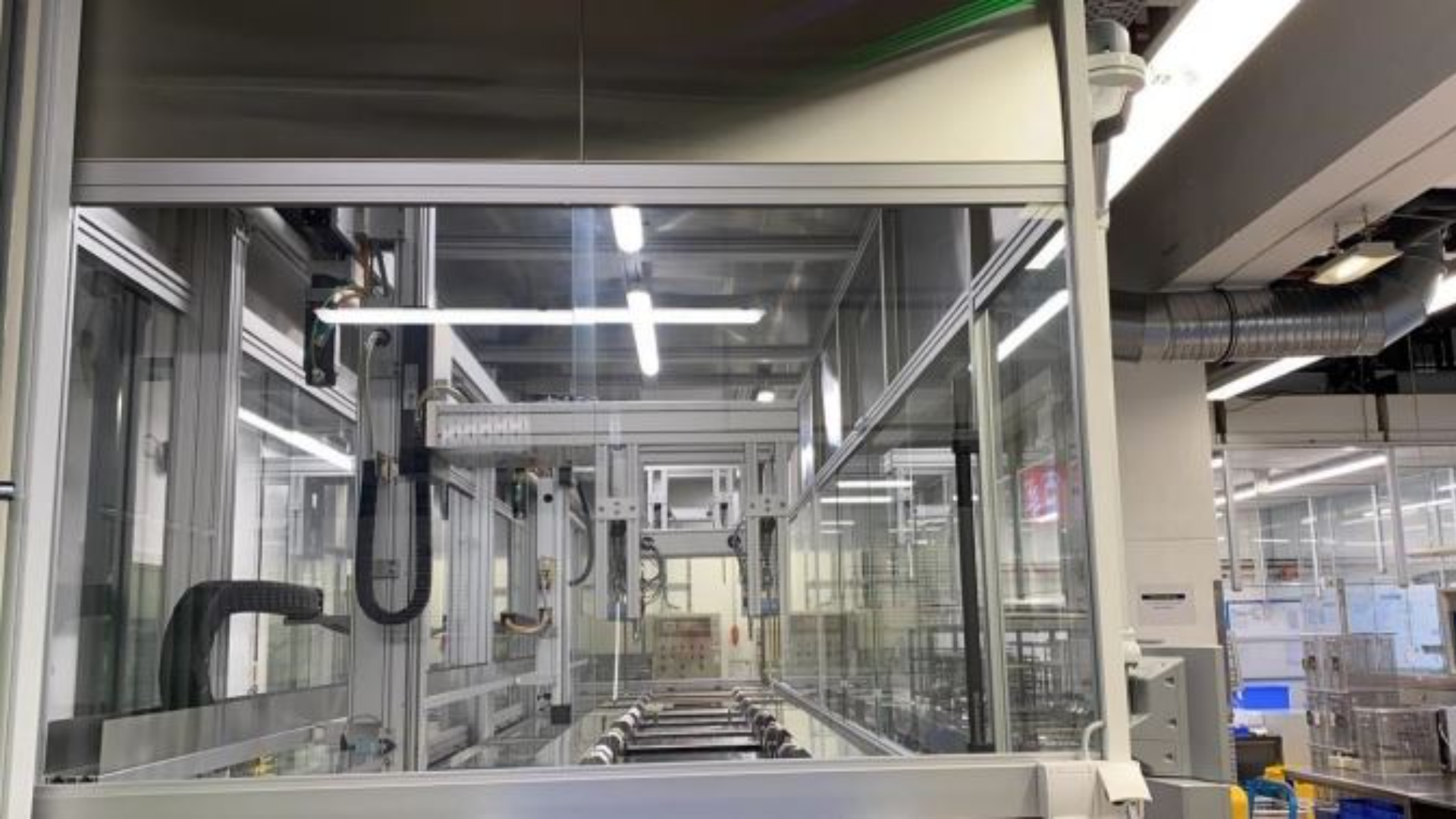Die vollständig gekapselte Ultraschall-Reinigungsanlage beinhaltet inklusive Be- und Entladung zwölf Stationen und zwei Umsetzer. Sie sind ebenso wie die Parameter der in den verschiedenen Becken durchzuführenden Prozesse frei programmierbar. Es können dadurch Stationen beliebig angefahren und Prozesse frei gestaltet werden. „Um die Sauberkeitsanforderungen bei den verschiedenen Komponenten und Folgeprozessen abzudecken, arbeiten wir bei dieser Anlage mit rund 30 verschiedenen Reinigungsprogrammen, die über ein integriertes Barcodesystem automatisch ausgewählt werden“, erklärt André Hatje. Die Transportgestelle der Anlage verfügen über unterschiedliche Greifer. Dies ermöglicht, dass die verschiedenen kundenseitigen Reinigungsbehältnisse aufgenommen und programmspezifische Funktionen wie beispielsweise Heben und Senken sowie Drehen des Behältnisses in den Behandlungsstationen durch-geführt werden können. Der realisierbare Durchsatz liegt je nach Programm bei 12 bis 15 Körben pro Stunde im dreischichtigen Betrieb an sechs Tagen der Woche.